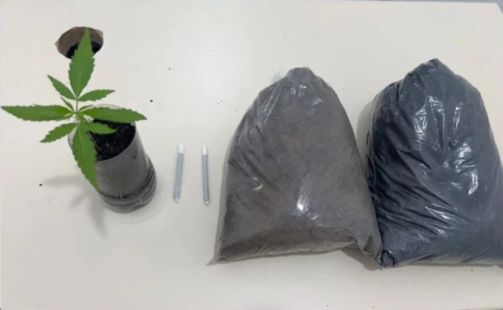 Durante a fiscalização de rotina a um ônibus de turismo, os policiais encontraram 46 tabletes de maconha, totalizando 26,5 kg, no compartimento de bagagens. A passageira foi identificada como a proprietária das malas onde a droga estava escondida.